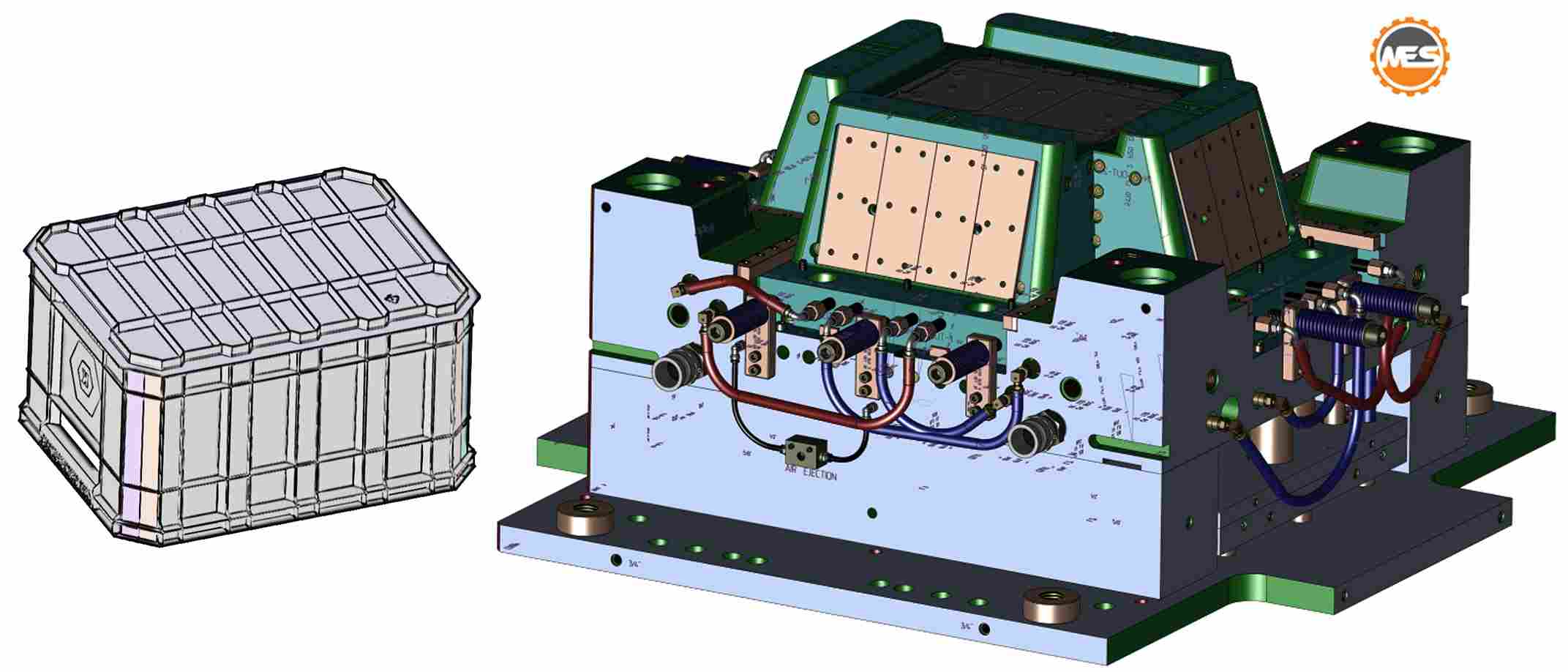 Crate Core Side Injection Mold Large Sliders & Large Lifters, 4 drop Hotrunner system.